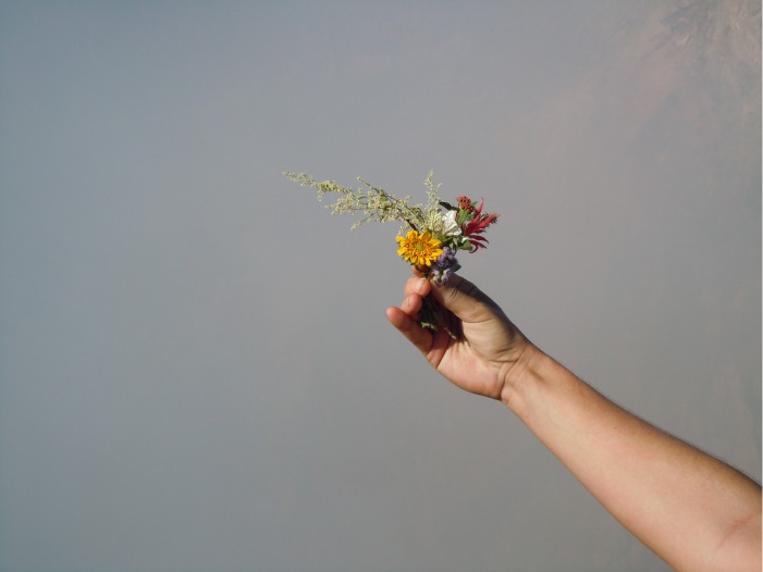 Rochelle gathered a wildflower bouquet on the way up and sacrificed it into the depths of the crater